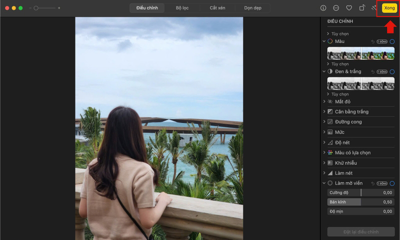 Khi đã hài lòng với hiệu ứng, nhấn nút Xong (Done) ở góc trên bên phải để lưu ảnh vào thư viện. Bạn có thể xem lại hoặc chỉnh sửa thêm bất kỳ lúc nào.