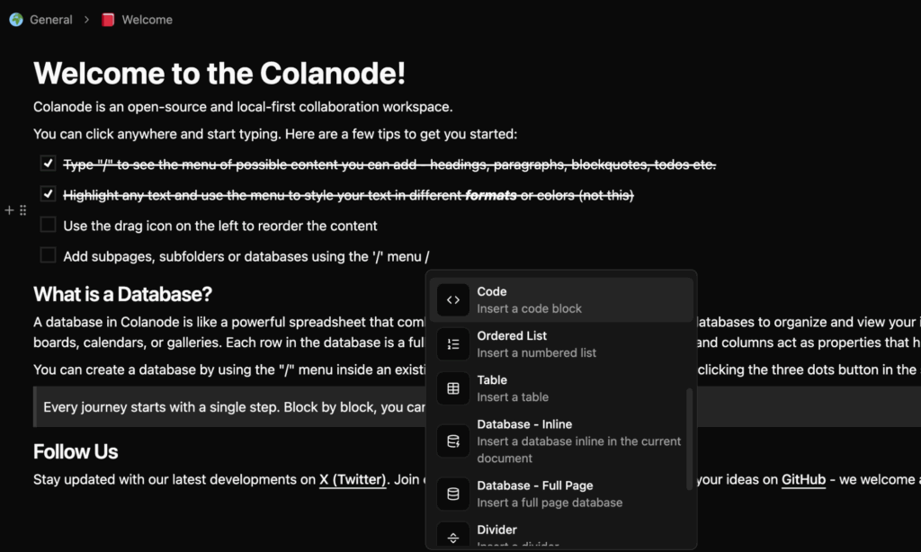Nếu bạn chỉ muốn thử nghiệm Colanode mà không cần cài đặt, hãy sử dụng web app miễn phí: