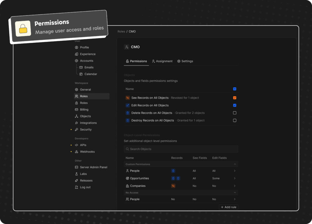 Đừng để chi phí CRM đắt đỏ cản trở sự phát triển của doanh nghiệp bạn – Twenty CRM mang đến tất cả tính năng cần thiết hoàn toàn miễn phí, với quyền kiểm soát đầy đủ trong tay bạn.