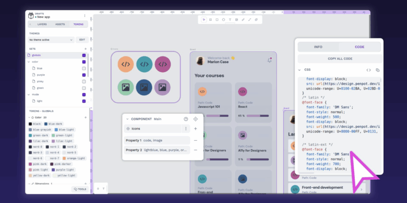 - Design Tokens tích hợp sẵn: Penpot là nền tảng đầu tiên tích hợp native Design Tokens theo tiêu chuẩn W3C, cho phép đồng bộ các giá trị thiết kế giữa design và code một cách liền mạch.