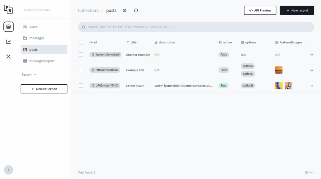 Mỗi collection bạn tạo sẽ tự động có sẵn các endpoint API đầy đủ cho CRUD operations. PocketBase còn cung cấp API documentation tự động cho từng collection[54].