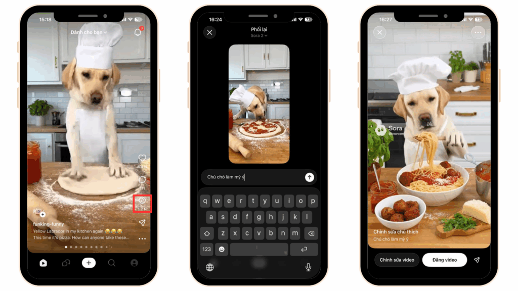 Ứng dụng Sora được thiết kế như một mạng xã hội (giống TikTok hoặc Instagram), nhưng điểm khác biệt là mọi nội dung đều do AI tạo ra. Bạn có thể lướt xem, thả tim, bình luận, theo dõi người khác và “tái tạo” (remix) lại video của họ bằng cách mô tả thay đổi bạn muốn.