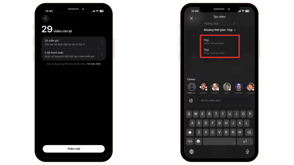 - Thời lượng 15 giây: Dài hơn nhiều đối thủ (như Veo 3.1 chỉ 8 giây), tuy nhiên video 15s sẽ tốn 2 lượt tạo.