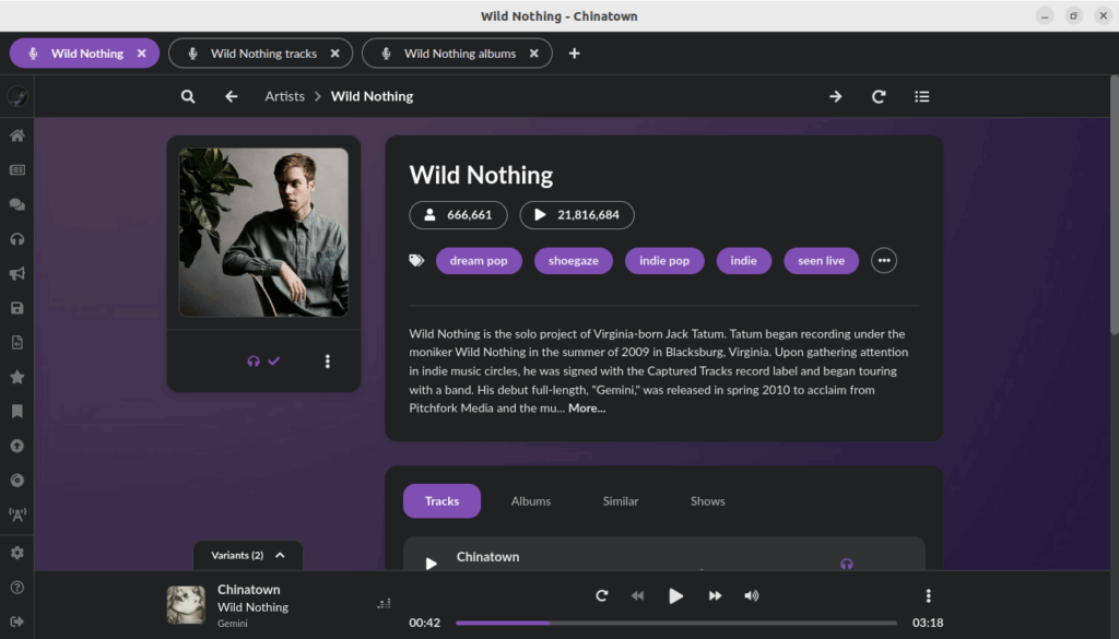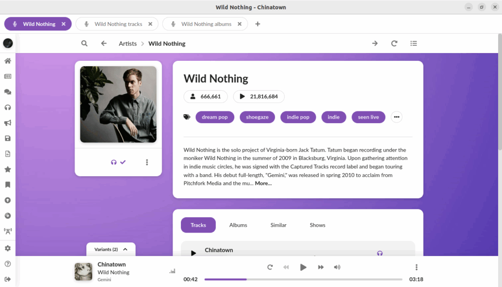 Muffon là một client streaming nhạc đa nguồn tiên tiến, được phát triển mã nguồn mở trên GitHub bởi cộng đồng nhà phát triển, hỗ trợ kéo dữ liệu từ 14+ nền tảng nhạc như Spotify, YouTube, YouTube Music, Deezer, SoundCloud, Bandcamp, Last.FM, Yandex Music, VK và nhiều hơn nữa. Điều tuyệt vời nhất? Hoàn toàn miễn phí, không có quảng cáo, không bắt buộc đăng nhập, giao diện sạch sẽ – một trải nghiệm nghe nhạc thuần túy, không bị xáo trộn.