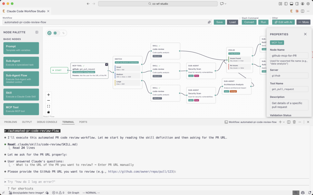 ClaudeCode Workflow Studio là một tiện ích mở rộng (Extension) mạnh mẽ dành cho Visual Studio Code, cho phép các nhà phát triển thiết kế và quản lý các luồng công việc (workflow) với Claude AI thông qua giao diện trực quan. Thay vì viết hàng tá dòng code hoặc prompt thủ công, bạn có thể sử dụng giao diện kéo-thả để xây dựng kiến trúc LLM orchestration phức tạp.