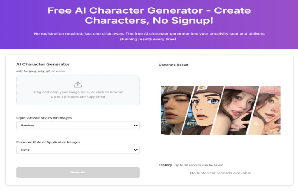 Tạo ảnh: Đầu tiên, tải lên ảnh hoặc hình ảnh mà bạn muốn chuyển đổi thành nhân vật.