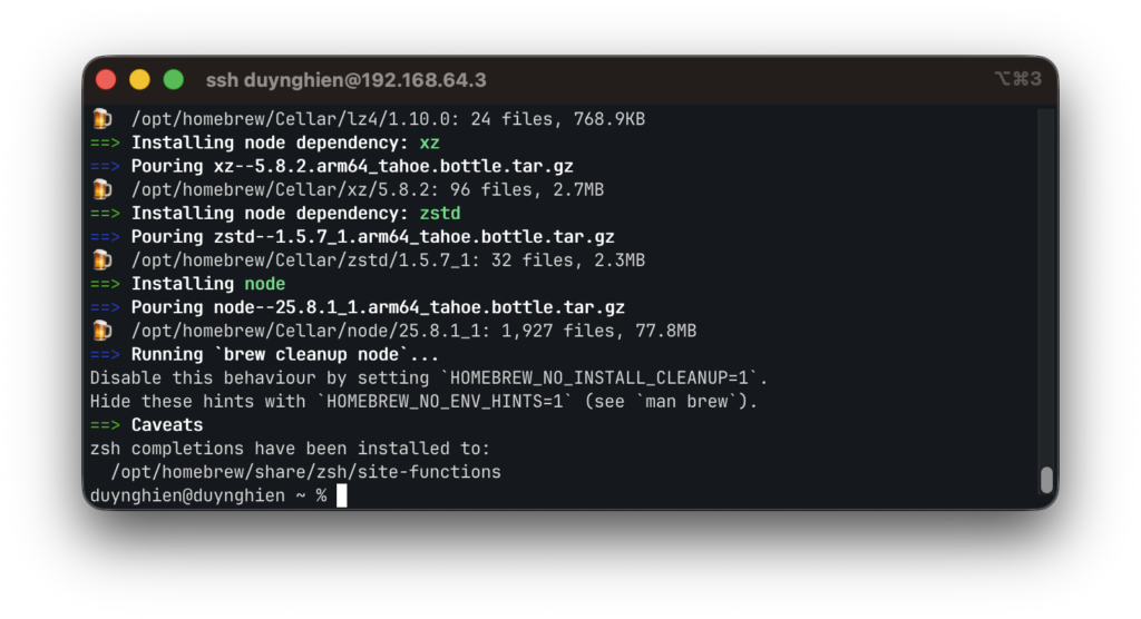 eval "$(/opt/homebrew/bin/brew shellenv zsh)"OpenClaw chạy trên nền tảng Node.js (yêu cầu phiên bản 22 trở lên):