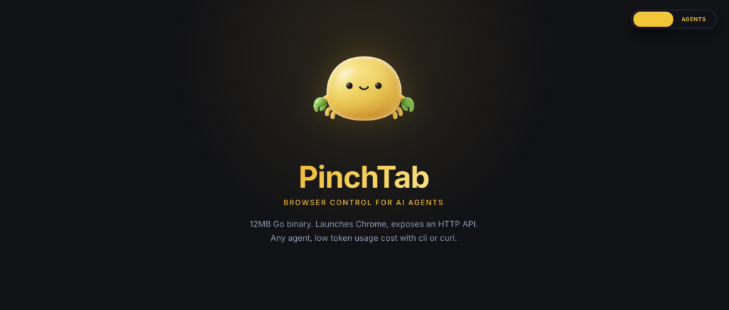 - PinchTab là một HTTP server độc lập viết bằng Go (12MB, không phụ thuộc ngoài), cho phép AI agent điều khiển Chrome thông qua CLI hoặc HTTP API – không cần Node.js, không cần driver phức tạp.