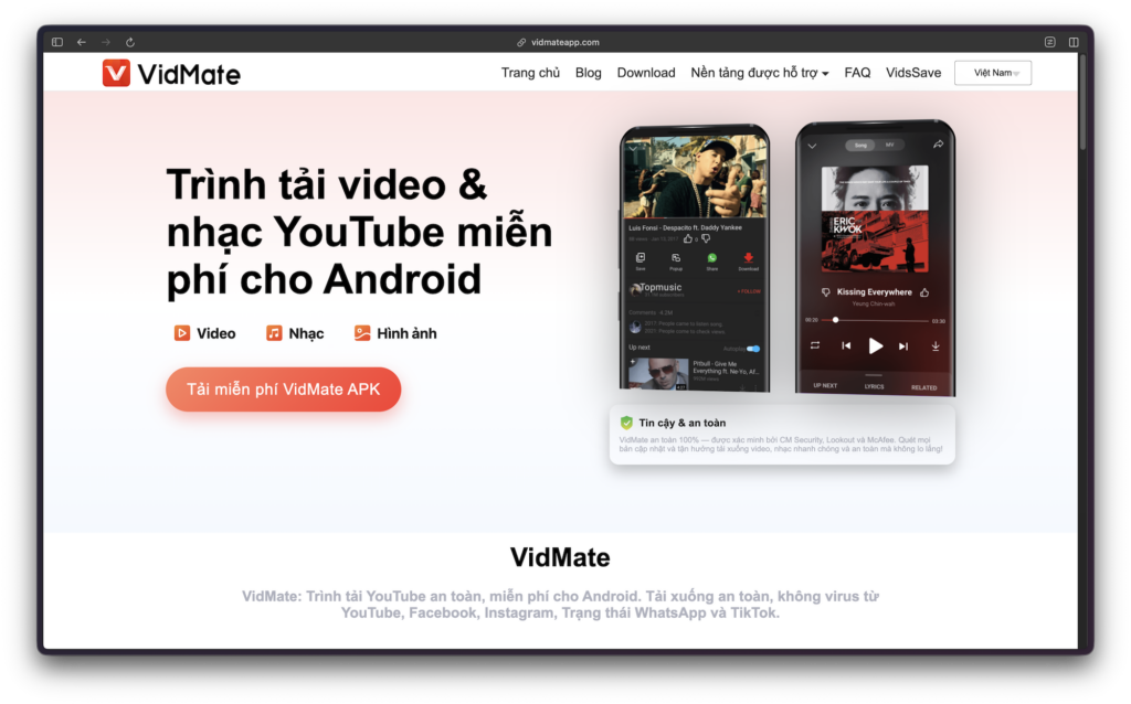 Trong nhóm Android, VidMate vẫn là cái tên được nhắc tới nhiều khi người dùng cần tải media trực tiếp trên điện thoại. Về định vị sản phẩm, đây là một ứng dụng tải video và nhạc trực tuyến dành cho Android, hỗ trợ tải xuống phương tiện từ nhiều trang web phổ biến. Điểm mạnh của nhóm ứng dụng kiểu này là thao tác nhanh, phù hợp với người dùng muốn mở link, chọn chất lượng và lưu ngay trên máy mà không cần qua PC.