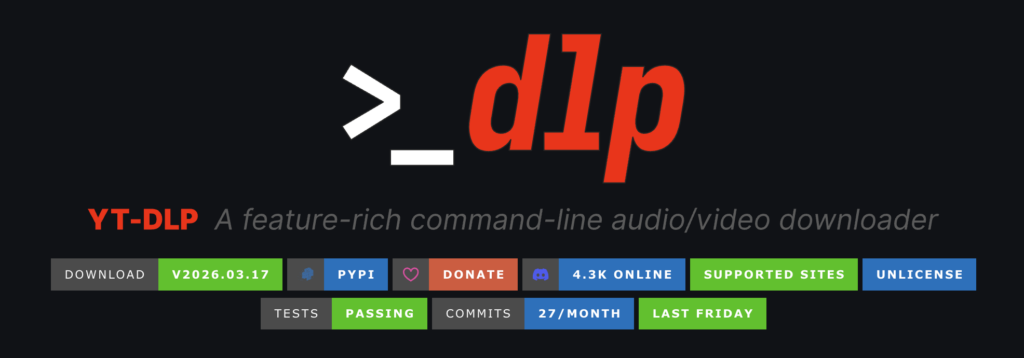 yt-dlp là lựa chọn mạnh nhất cho người dùng thích kiểm soát toàn diện quá trình tải. Đây là công cụ dòng lệnh, được duy trì tích cực, hỗ trợ hàng nghìn website và nổi bật ở khả năng chọn định dạng cực chi tiết, hậu xử lý qua FFmpeg, nhúng metadata, phụ đề, thumbnail, hỗ trợ plugin và cả SponsorBlock. Với người dùng kỹ thuật, yt-dlp gần như là chuẩn tham chiếu về độ linh hoạt trong mảng tải video/audio hiện nay.