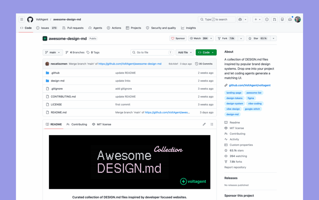 Awesome DESIGN.md là một bộ sưu tập mã nguồn mở tập hợp nhiều tệp DESIGN.md lấy cảm hứng từ giao diện của các sản phẩm công nghệ nổi tiếng. Điểm đáng chú ý là dự án không cố thay thế công cụ thiết kế truyền thống, mà tập trung vào một thứ rất hợp với thời đại AI: mô tả hệ thống thiết kế bằng chính định dạng markdown mà mô hình ngôn ngữ đọc rất tốt.