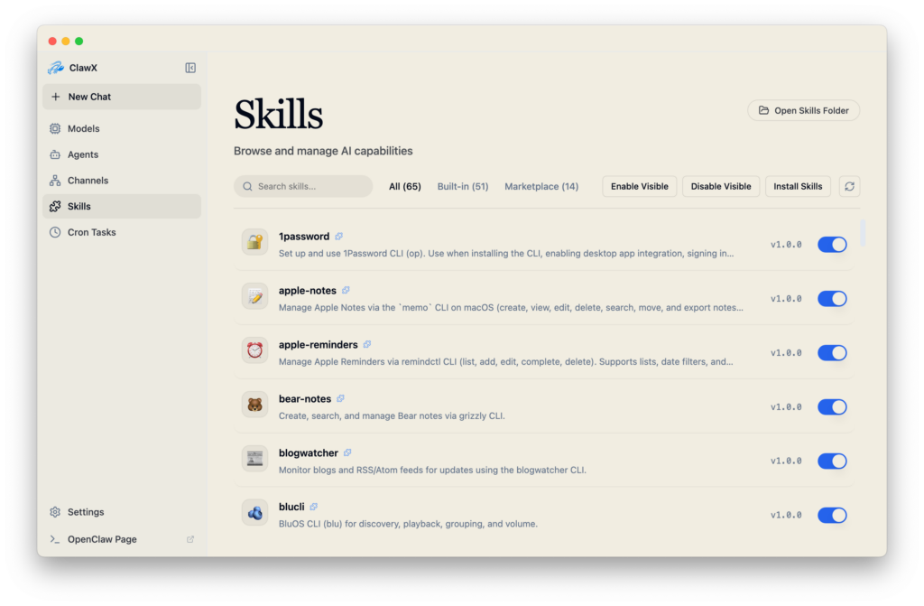 - Skills marketplace cho phép browse, install và quản lý skills một cách trực quan.